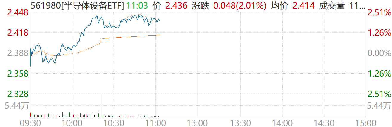 1月27日,半导体设备板块表现强势。截至上午11时04分,表征板块的半导体设备ETF(561980)涨2.01%,成分股中,与存储产业链高度相关的设备与材料公司领涨,芯源微(688037.SH)、金海通(603061.SH)、富创精密(688409.SH)、康强电子(002119.SZ)等涨幅居前。