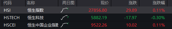 港股:截至发稿,恒指涨0.11%,恒科指跌0.30%。
