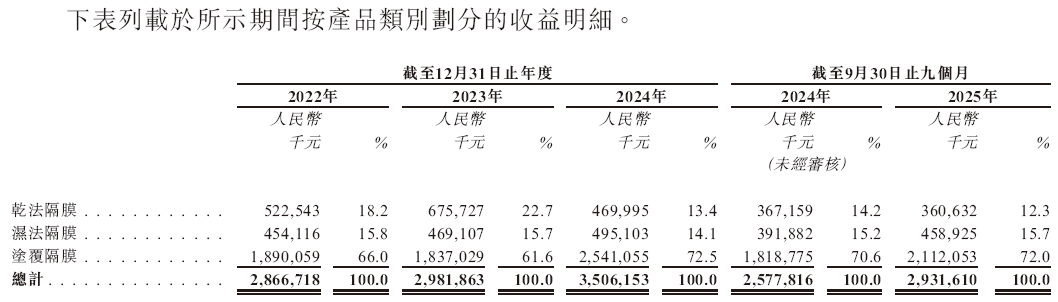 星源材质的收入来自销售锂离子电池隔膜,包括干法隔膜、湿法隔膜、涂覆隔膜。
