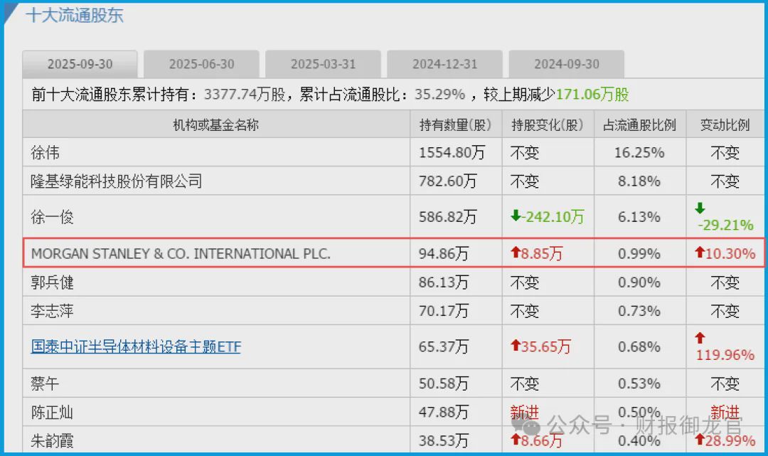 一份看似亮眼的三季报,与一笔来自 MORGAN STANLEY & CO. INTERNATIONAL PLC. 的10%加仓指令,同时抵达。