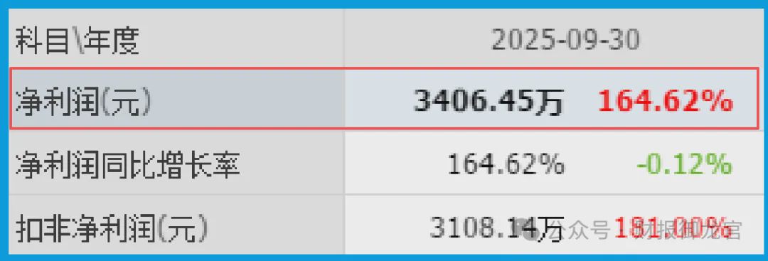 现场勘查从最硬的数字开始。2025年三季度,净利润3406.45万元,同比增幅164.62%。