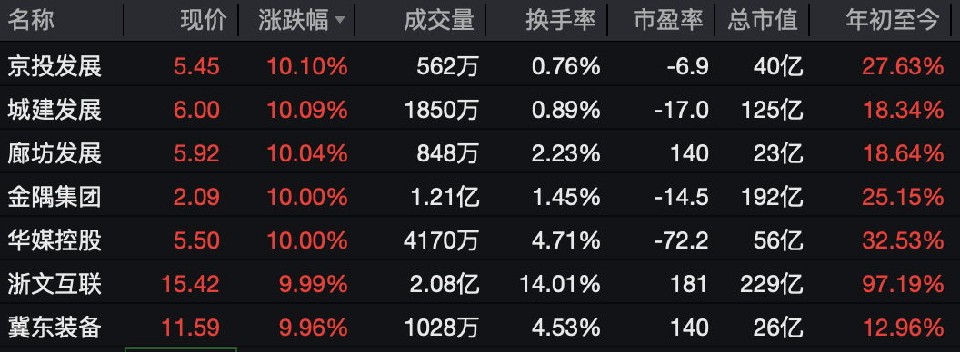 京津冀概念股集体高开早盘京津冀概念股集体高开,京投发展、城建发展、廊坊发展、冀东装备涨停,首开股份(维权)、北辰实业、津滨发展等跟涨。