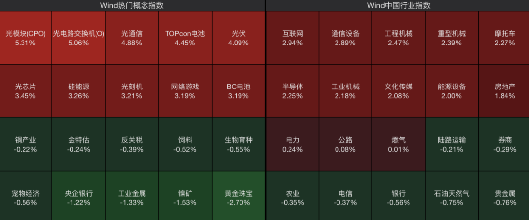从板块来看,京津冀概念股集体高开,AI应用方向走高,光伏、储能、半导体等板块涨幅居前;而贵金属、工业金属、银行等板块震荡调整。