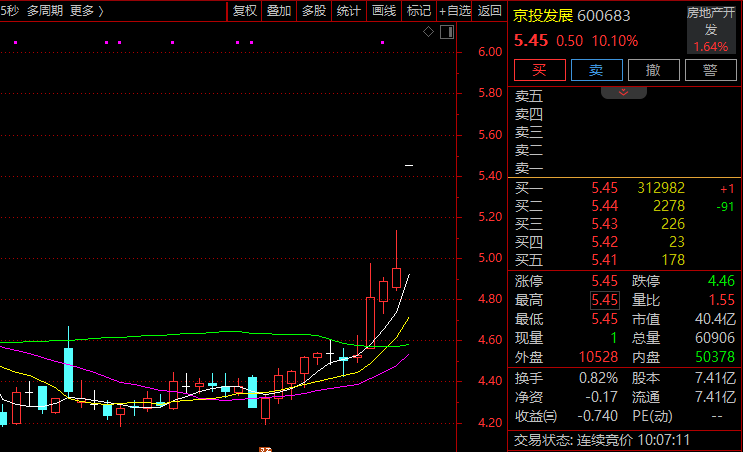 盘面上,房地产板块盘初走强,京投发展(600683)、城建发展、华夏幸福均涨停,滨江集团、荣盛发展等股跟涨。