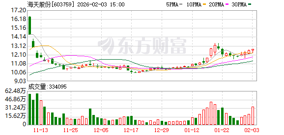 证券时报·数据宝统计,截至发稿,海天股份收盘价为12.70元,上涨1.36%,本期筹码集中以来股价累计下跌3.57%。具体到各交易日,5次上涨,5次下跌。