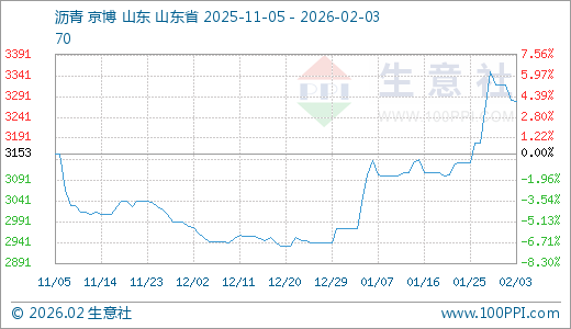 据生意社监测,沥青02月03日最新价格3280.00元/吨,最近60天上涨11.44%。