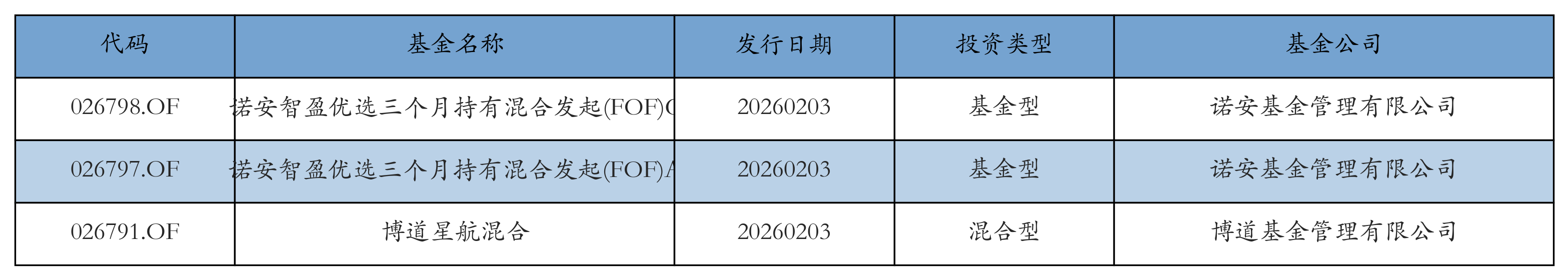 昨日有3只新基金发行,分别为:诺安智盈优选三个月持有混合发起(FOF)C、诺安智盈优选三个月持有混合发起(FOF)A、博道星航混合,详情见下表: