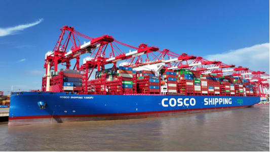 扬州中远海运重工有限公司交付的16000TEU甲醇双燃料集装箱船是由中国船厂新造的首批大型甲醇燃料集装箱船,并实现了大型甲醇双燃料集装箱船建造领域“国内船东第一单、国内船厂交付第一艘、国产甲醇双燃料主机第一次实船应用”三个历史性突破,为全球班轮业加快温室气体减排提供了“中国方案”。