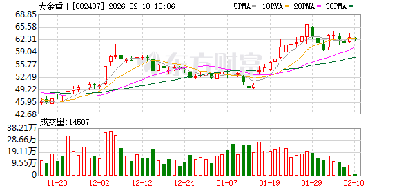 证券时报·数据宝统计,截至发稿,大金重工最新股价为62.57元,下跌0.35%,本期筹码集中以来股价累计上涨9.27%。具体到各交易日,9次上涨,6次下跌。