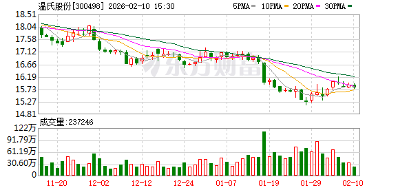 证券时报·数据宝统计显示,温氏股份今日收盘价为15.79元,下跌0.57%,日换手率为0.40%,成交额为3.75亿元,全天主力资金净流出4059.19万元,近5日该股累计上涨0.32%,近5日资金合计净流入5132.81万元。