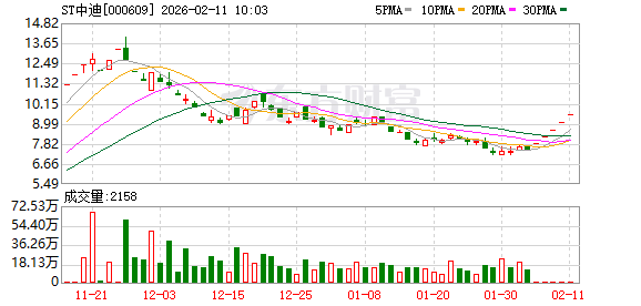 ST中迪(维权)盘中涨停,已连收5个涨停板,截至9:25,该股报9.52元,换手率0.02%,成交量5.75万股,成交金额54.74万元,涨停板封单金额为1.27亿元。连续涨停期间,该股累计上涨27.44%,累计换手率为0.94%。最新A股总市值达28.49亿元,A股流通市值27.71亿元。