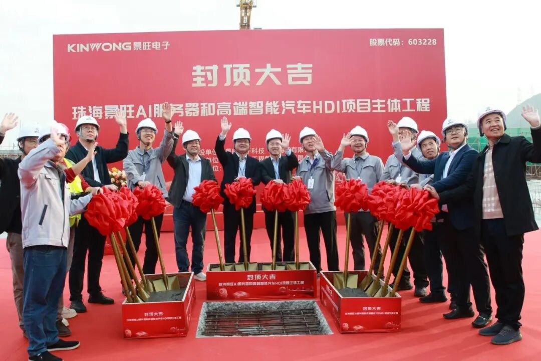 景旺电子深耕HLC、HDI 等 PCB 高端产能领域多年,珠海基地自 2019 年动工、2021 年投产以来,已形成年产 120 万㎡高多层板、60 万㎡HDI(含 SLP)的核心产能。本次封顶的扩产项目,是景旺电子布局未来的关键落子 —— 总建筑面积超 11 万平方米,涵盖 1 栋工业厂房、2 座钢结构连廊及 1 座钢结构管廊,达产后将新增年产 80 万㎡高阶 HDI(含 SLP)产能,为 AI 算力升级、高端智能汽车产业发展注入强劲动力,成为 PCB 行业迈向高质量发展的生动实践!