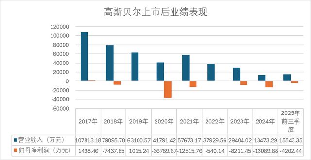上市9年,*ST高斯仅有两年盈利,营收更是一路“俯冲”,2024年仅收入1.35亿元,较2016年(11.01亿元)下降了一个数量级。