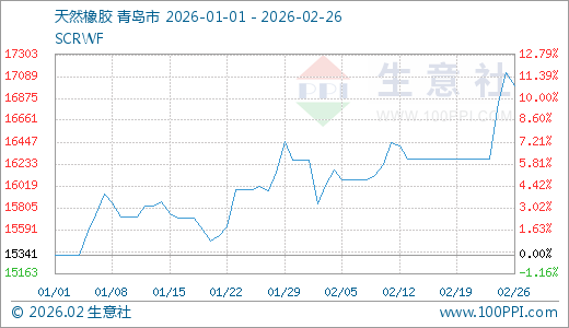 根据生意社股票通显示,2026年以来国内天然橡胶市场行情呈现震荡上行走势,截止2月26日青岛地区市场均价在17000元/吨,较年初上涨10.81%。对应A股橡胶板块表现强劲,海南橡胶自1月以来涨幅超过30%,中化国际涨幅超17%,科创新源、阳谷华泰、黑猫股份等上涨。