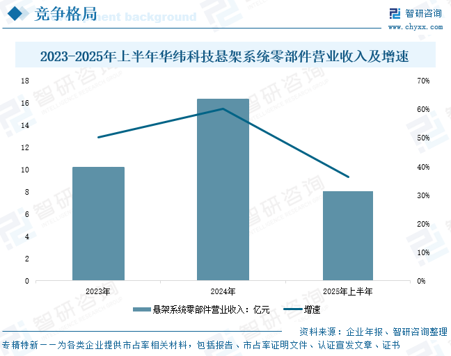 华纬科技股份有限公司主要从事高端弹性元件的研发、生产和销售,产品包括悬架系统零部件、制动系统零部件、阀类及异形零部件、其他专业设备类零部件等。其中,悬架系统是车身和车轮之间的连接系统,分为前悬架系统和后悬架系统,主要包含减振器、悬架弹簧、稳定杆、下控臂、连杆等结构部件。凭借多年的技术积累,公司已掌握多项生产高性能汽车弹簧的核心技术,具备独立自主的研究开发能力;引进了国内外先进的全自动生产设备,具备规模化生产能力;拥有先进完备的产品质量控制手段及检测手段,能满足下游汽车主机厂及汽车零部件企业对汽车弹性元件高应力、抗疲劳、轻量化的需求。2025年上半年公司悬架系统零部件实现营业收入8.04亿元,同比上涨36.46%。