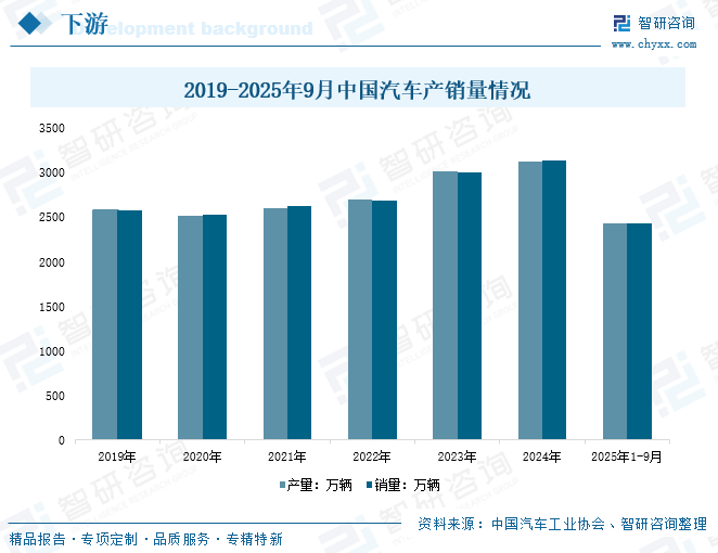 近年来,我国汽车产业得到快速发展,一方面得益于国家政策的支持,为汽车产业提供了良好的发展环境。尤其是适时推出的汽车以旧换新政策,不仅有效刺激了汽车消费市场的需求,也加速了中国汽车产业结构的优化和升级。另一方面,得益于关键领域和技术层面的重大突破。近年来,中国汽车产业在动力系统、高效传动系统、汽车电子等节能技术方面达到国际先进水平,动力电池、驱动电机等关键核心技术更是处于国际领先水平。这些技术的突破,为中国汽车产业的持续发展提供了有力支撑。根据中国汽车工业协会数据,2025年1-9月中国汽车产销量分别为2433.3万辆和2436.3万辆,同比分别增长13.3%和12.9%。随着汽车产销量的持续增长,稳定杆作为汽车重要零部件,其需求也呈现上升趋势。