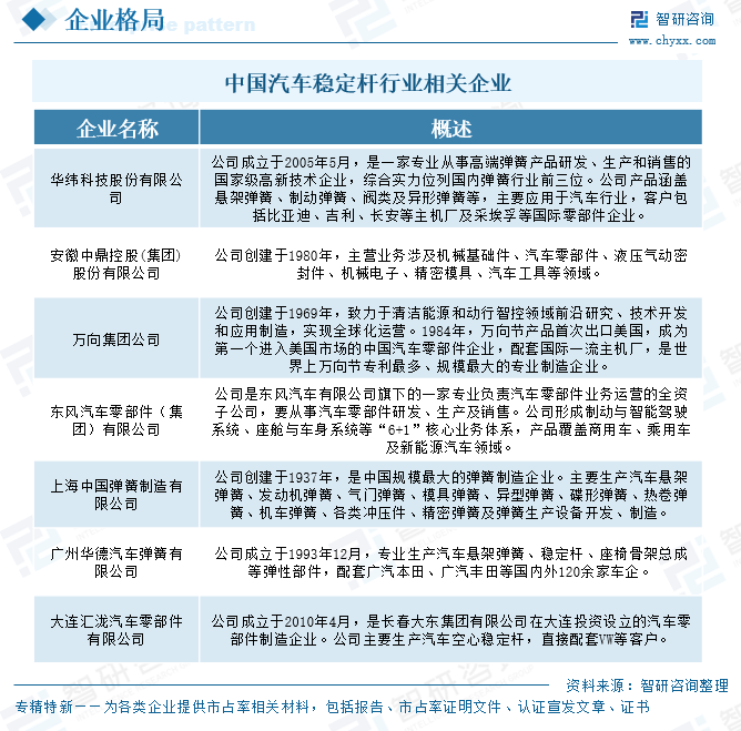 ●以上数据及信息可参考智研咨询(www.chyxx.com)发布的《中国汽车稳定杆行业市场产销格局及投资机会研判报告》。