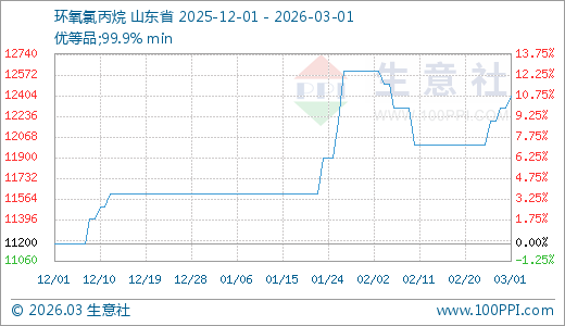 据生意社监测,环氧氯丙烷03月01日最新价格12400.00元/吨,最近5天上涨3.33%。