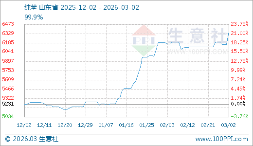 据生意社监测,纯苯03月02日最新价格6353.33元/吨,最近60天上涨20.59%。