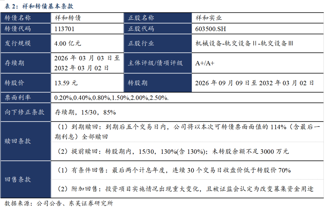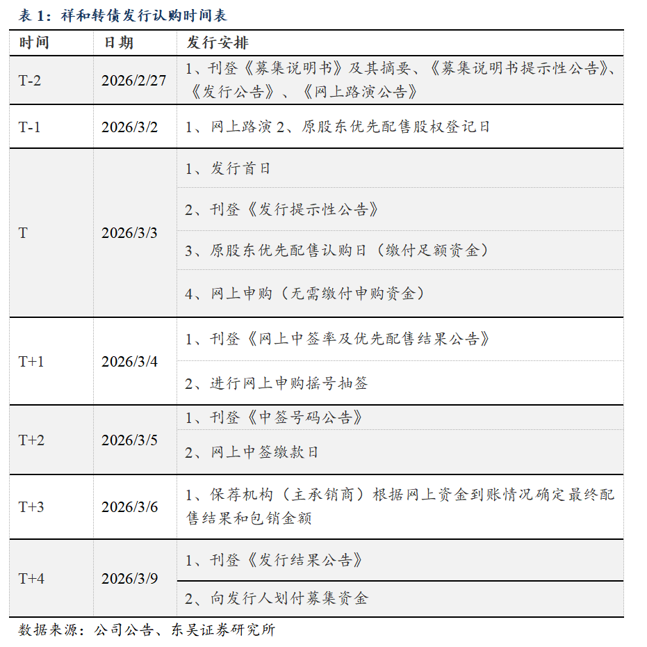 我们预计祥和转债上市首日价格在125.96-139.97元之间。按祥和实业2026年2月27日收盘价测算,当前转换平价为100.66元。
