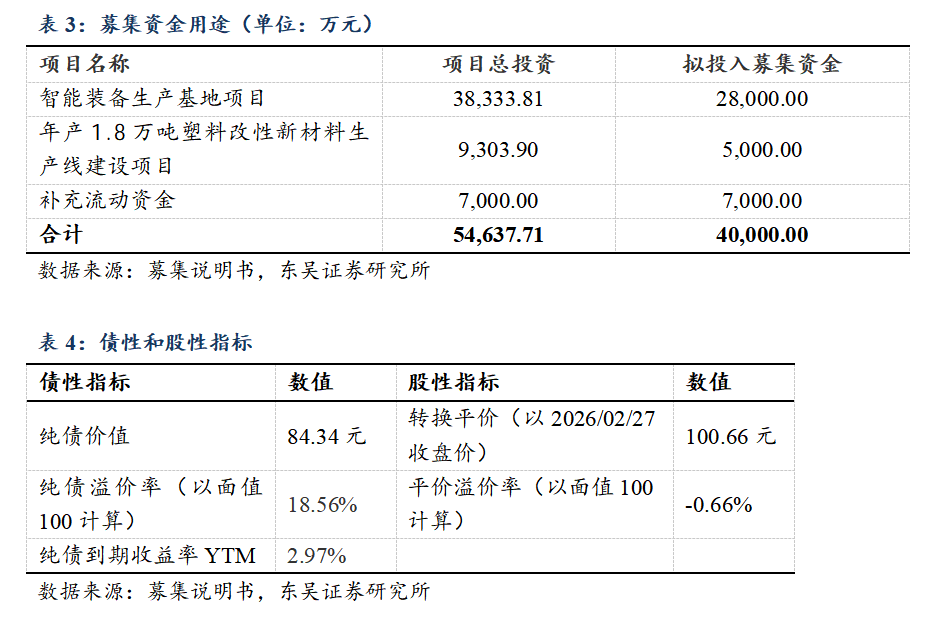 祥和转债(113701)于2026年3月3日开始网上申购:总发行规模为4.00亿元,扣除发行费用后的募集资金净额用于智能装备生产基地项目和年产1.8万吨塑料改性新材料生产线建设项目。