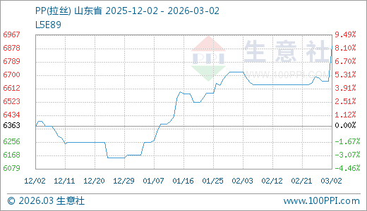 据生意社监测,PP03月02日最新价格6893.33元/吨,最近5天上涨3.04%,60天上涨11.72%。