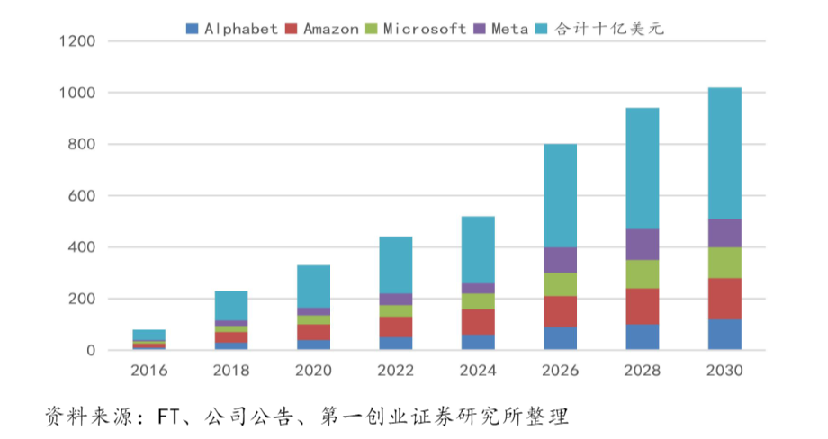 美国四大互联网巨头AI数据中心开始预期持续高增长