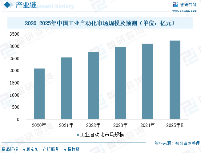 执行器作为工业自动化控制系统的终端执行元件,其应用贯穿于机械制造、石油化工、电力能源及冶金建材等核心工业场景,主要对阀门、风门、泵体等设备进行开关控制与精准调节。在具体技术路线上,电动执行器凭借高精度与数字化互联能力,已成为智能生产线的主流选择;液压执行器依托大扭矩优势主导重型设备控制;而气动执行器则因本质防爆特性,在易燃易爆的化工环境中占据主导,三者共同构成了工业自动化的“执行中枢”。从市场基本盘来看,工业自动化是执行器最大的需求领域,占据整体市场份额的50%以上;2025年我国工业自动化市场规模预计将突破3225亿元,这为上游执行器市场提供了坚实且持续的增长动力。