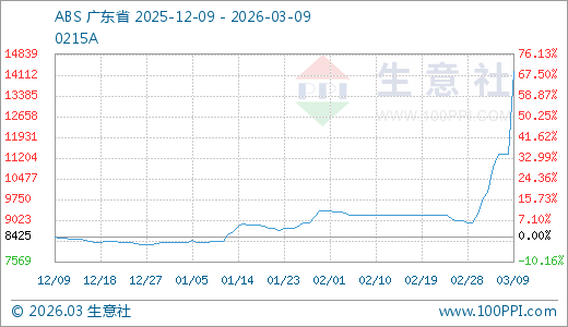 据生意社监测,ABS03月09日最新价格14233.33元/吨,最近5天上涨42.10%,10天上涨57.97%,60天上涨72.79%。