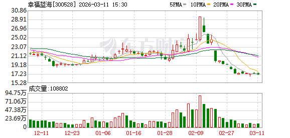 证券时报·数据宝统计,截至发稿,幸福蓝海收盘价为17.04元,下跌1.56%,本期筹码集中以来股价累计下跌11.48%。具体到各交易日,3次上涨,5次下跌。