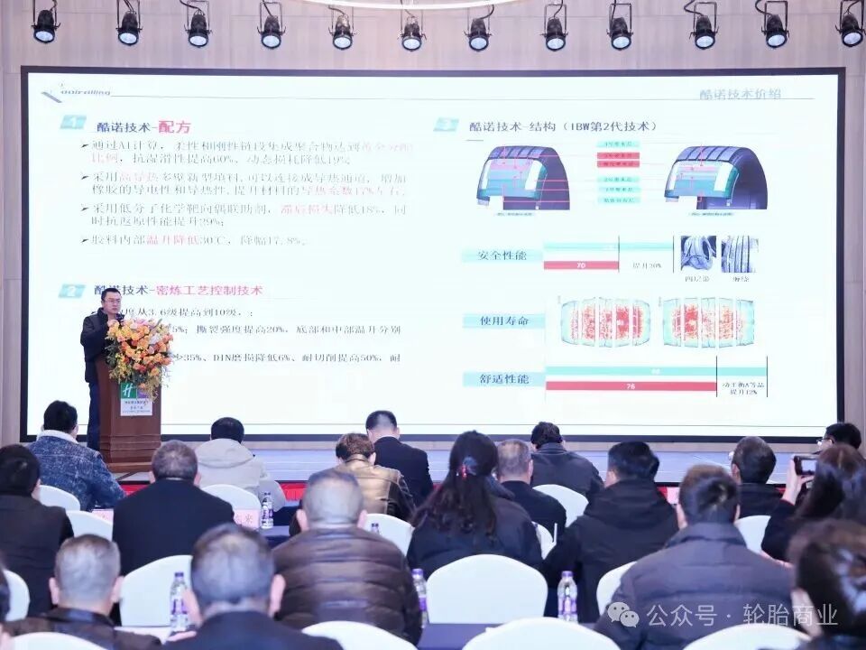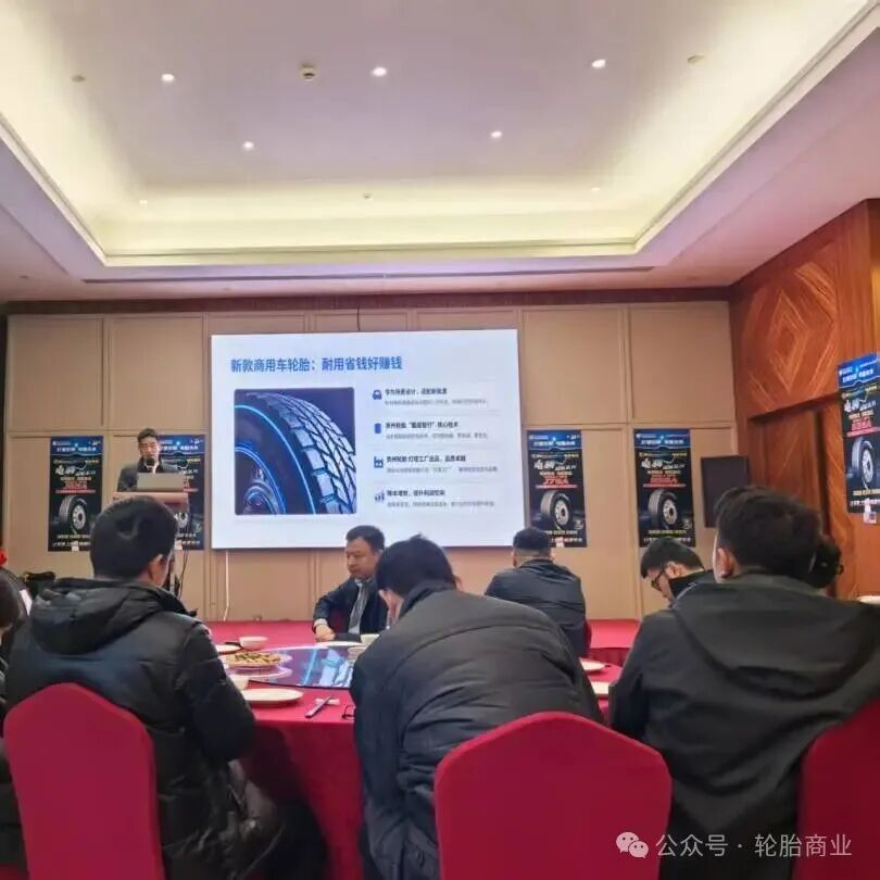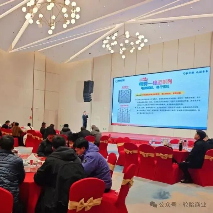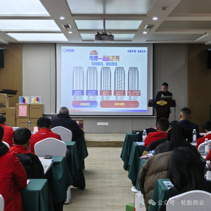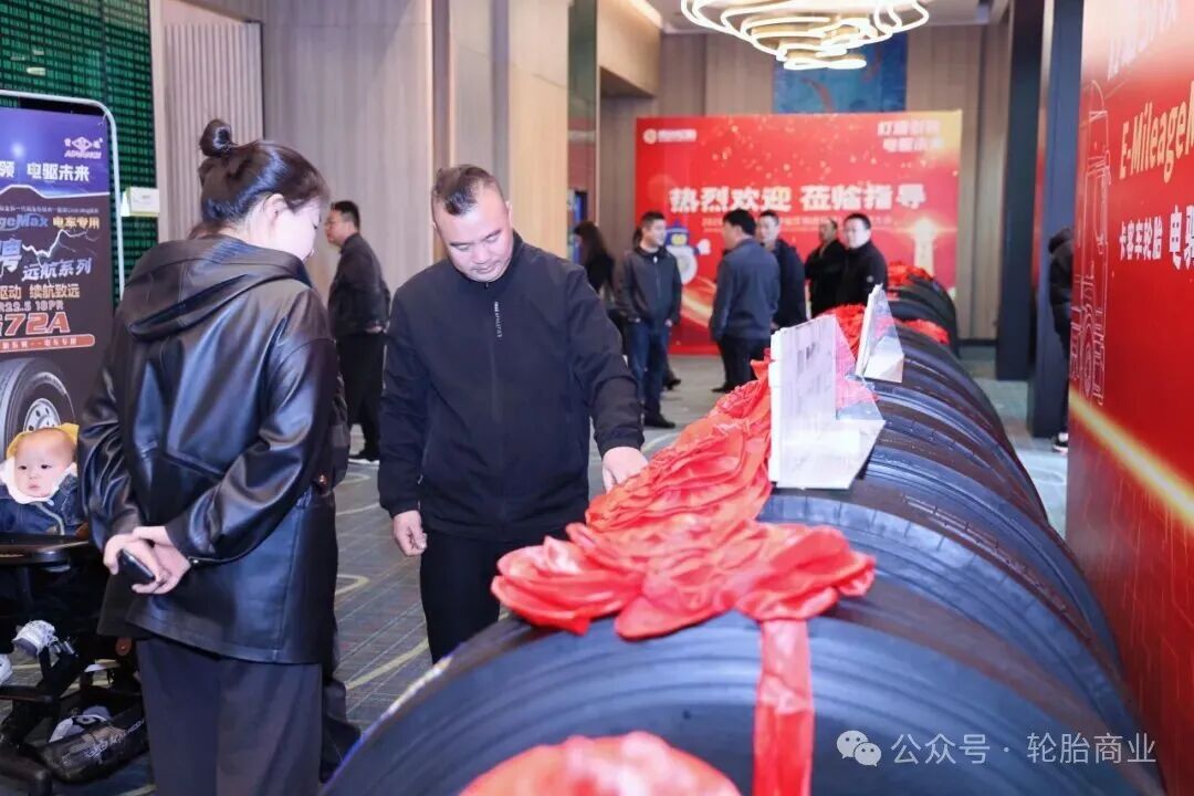 在产品层面,本次会议重点推介了拳头产品、大马力商用车系列产品及电骋系列产品。其中,拳头产品凭借稳定的性能表现,成为渠道客户现场预订的热门选择;而面向新能源商用车市场的电骋TBR系列,则从技术上有效提升磨耗性能与防偏磨性能,降低故障率,同步提升车辆续航里程,为用户提供真正的新能源商用车专用轮胎。