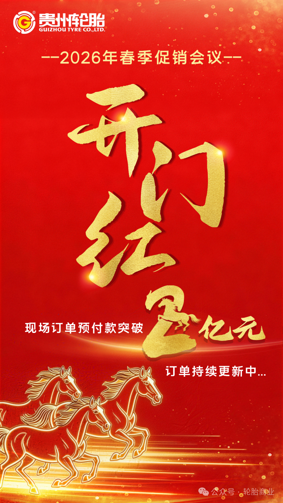 春潮涌动启新程,凝心聚力开新局。2026年丙午马年伊始,贵州轮胎深刻把握“一马当先”的锐气与“万马奔腾”的合力,锚定“国际化、智能化、绿色化、高端化”发展战略,携手全国渠道经销商早谋划、快行动。通过大力推进春季促销会议,深化厂商协同,激活市场动能,公司在马年开局之际顺利实现市场拓展的“开门红”,以实干回应了“策马扬鞭、勇往直前”的时代号召。