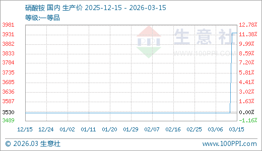 硝酸铵03月15日最新价格3940.00元/吨,最近5天上涨11.61%。