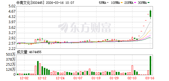 数据宝统计,截至09:35,中南文化成交额13.45亿元,创2023年12月19日以来新高。最新股价上涨0.45%,换手率12.26%。上一交易日该股全天成交额为5.16亿元。