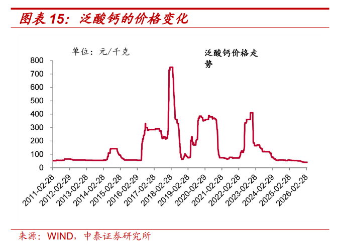 前面分析了两个强逻辑的涨价品种,那么还有没有滞涨的品种?也不少,而泛酸钙可能算其中一个。