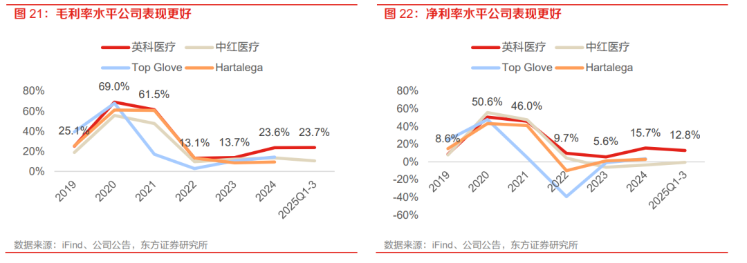 并且,英科在近年提升了丁腈胶乳自供的比例,而东南亚企业可能面临丁腈胶乳进口运费的上涨,进一步拉大双方的成本差距,对比行业公司的利润率可见一斑。