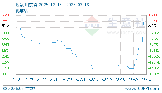 据生意社监测,液氨03月18日最新价格2560.00元/吨,最近10天上涨19.63%,5天上涨9.25%。