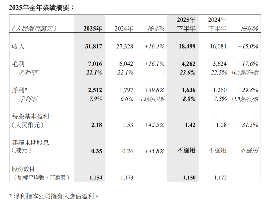 4.瑞声科技2025年营收318.2亿元,净利润同比大增39.8%;