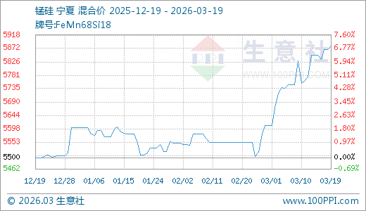 锰硅03月19日最新价格5880.00元/吨,最近20天上涨4.81%,30天上涨5.91%,90天上涨6.91%。