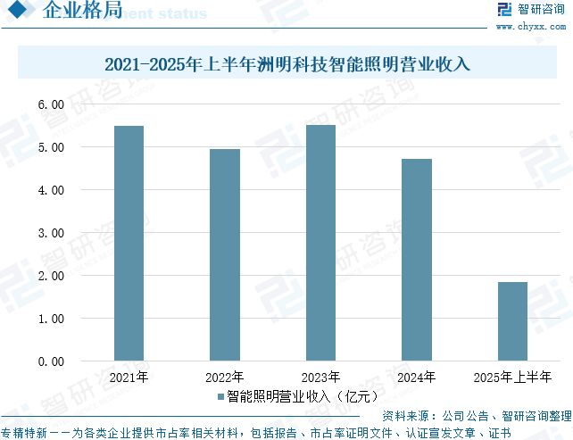深圳市洲明科技股份有限公司成立于2004年,2011年在深圳创业板上市,是一家全球化的LED显示与照明产品及光显解决方案提供商。公司主营业务涵盖LED显示屏、智慧照明及光显一体化解决方案,量产Mini-LED0.9产品并实现全球首发,产品覆盖160多个国家和地区,客户包括华为、微软、苹果等世界500强企业。洲明科技专注于LED显示和照明两大业务领域,以显示业务作为城市数字化交互核心,以照明业务作为城市多维数据采集入口。致力于科技与设计,为全球客户提供包含软、硬件及内容的LED光显产品及解决方案。公司的光显解决方案也应用于电影领域,2024年“UC-A40透声LED电影放映系统”获中国电影科学技术研究所年度技术奖,2025年与潇湘电影集团达成战略合作。据统计,2025年上半年,洲明科技智能照明营业收入为1.85亿元,同比下降16.29%。