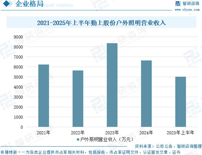 东莞勤上光电股份有限公司是国内最早进入半导体照明领域的上市企业之一,专注LED照明应用二十余年,是国家火炬计划重点高新技术企业。公司与多家国家科研院所和高校建立了长期的产学研合作,设有国家认可实验室(CNAS)、博士后科研工作站和智慧城市研究院,承担过“863计划”、国家重点新产品等多个重大科研项目,具备较强的自主创新能力。曾荣获国家科学技术奖二等奖,是国内领先的半导体照明产品及综合解决方案提供商。公司自主研发和生产的半导体照明产品主要涵盖三大系列:户外照明、庭院照明和景观照明,并涉及部分室内照明及显示屏产品。产品广泛应用于智慧照明、道路照明、隧道照明、商业照明、工业照明等多个领域,参与多个LED示范工程和重点照明项目。公司可为细分应用场景提供专业化LED照明解决方案,也可为综合性场所提供一站式照明服务。公司半导体照明业务的户外照明产品主要包括路灯、新能源路灯、智慧路灯、隧道灯、区域照明产品等。公司半导体照明业务的户外庭院用品主要为面向境外客户销售。公司半导体照明业务的景观照明产品主要包括洗墙灯、线条灯、轮廓灯、泛光灯、投光灯、点光源、地埋灯、草坪灯、水下灯、庭院灯、嵌壁灯和照树灯产品等。数据显示,2025年上半年,勤上股份户外照明营业收入为5002万元,同比增长110.08%。