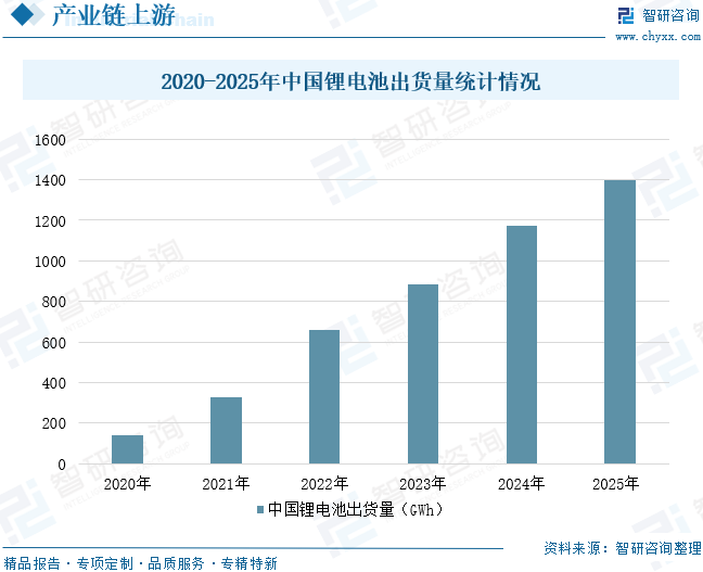 太阳能路灯通常使用锂电池作为储能设备。锂电池是一种高能量密度、长寿命、环保的电池、适合用于太阳能路灯这种需要长时间储存能量的应用。太阳能路灯通过太阳能电池板将太阳能转化为电能,然后将电能储存在锂电池中。白天太阳能电池板会将太阳能转化为电能,并将多余的电能储存在锂电池中。当夜晚来临,太阳能电池板无法继续产生电能时,锂电池会释放储存的电能供太阳能路灯使用。这样,太阳能路灯就能在夜晚正常工作,而无需外部电源供应。受下游行业需求快速增长的强力驱动,近年来中国锂电池出货量快速上涨。数据显示,中国锂电池出货量从2020年的142GWh增长至2024年的1175GWh,年复合增长率为69.6%。2025年中国锂电池出货量将增长至1400GWh。锂电池出货量的持续高速增长与产能扩张,将为下游太阳能路灯行业提供更为充足、成本优化且性能不断提升的核心储能部件供应保障,有力支撑太阳能路灯的规模化普及与产品迭代升级。
