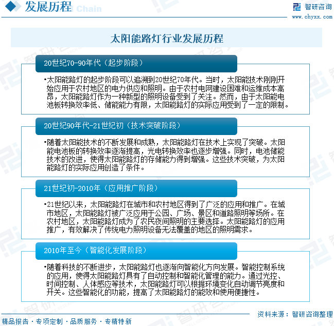 ●以上数据及信息可参考智研咨询(www.chyxx.com)发布的《中国太阳能路灯行业市场竞争格局及发展前景研判报告》。