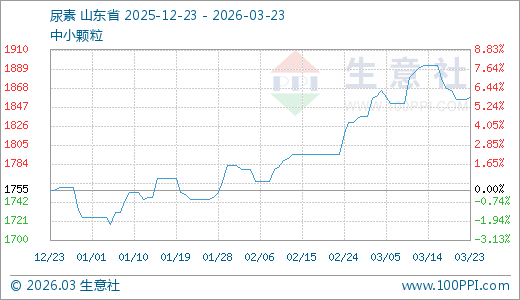 据生意社监测,尿素03月23日最新价格1857.50元/吨,最近30天上涨3.48%,60天上涨6.45%。