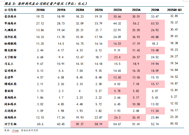 原料药企业供给在2023年后趋于稳定。我们统计了17家原料药企固定资产情况,大部分企业固定资产均从2022年开始快速增加,并在2023年进入稳态。我们认为行业的大幅转固都集中在2023年,目前产业供给端稳定,我们预计上游成本提升有望逐步向下游传导。