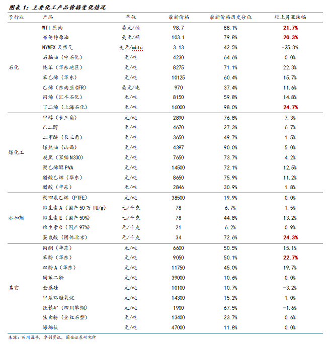 1.1受到石油价格上涨和海外能源成本影响,化工产品涨价明显