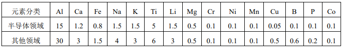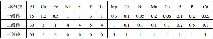 石英砣级高纯石英砂各元素要求(单位 μg/g)