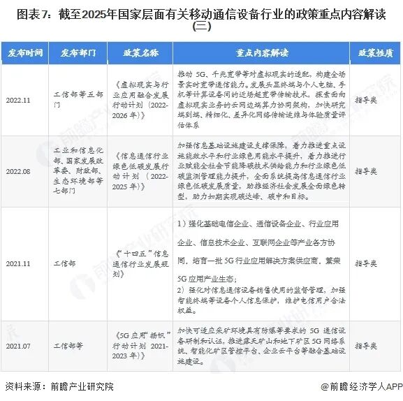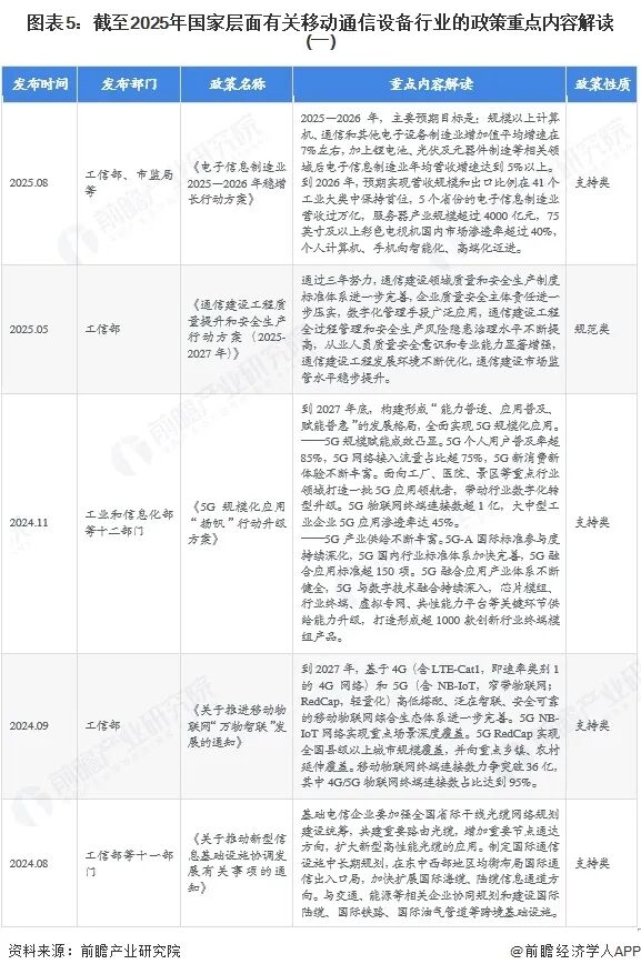 近年来,我国政府出台了一系列支持移动通信设备和技术发展的政策,聚焦通过推动移动通信设备的发展,以带动5G在我国的全面应用。2021-2025年,代表性政策情况如下表所示: