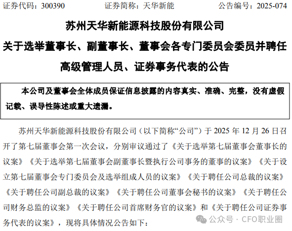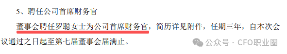 2025年12月16日,该公司发布的公告显示,董事会聘任罗聪女士为公司首席财务官。