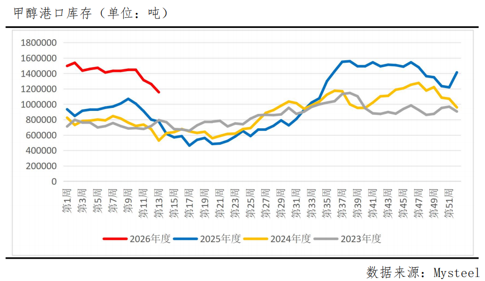 随着进口货源的减少,前期高企的港口库存正在被快速消化。最新的库存数据验证了这一趋势。Mysteel发布的数据显示,截至3月25日,中国甲醇港口库存总量已降至115.55万吨,较上一期大幅减少10.62万吨,且华东、华南双双去库。这一数据相比3月初的144.35万吨下降了近20%。值得注意的是,尽管价格高涨,但港口提货量保持良好,说明在绝对高价下仍有刚需支撑。